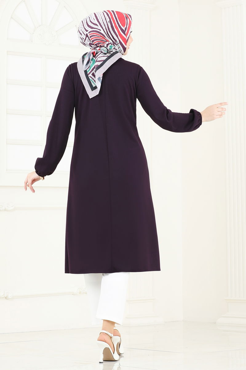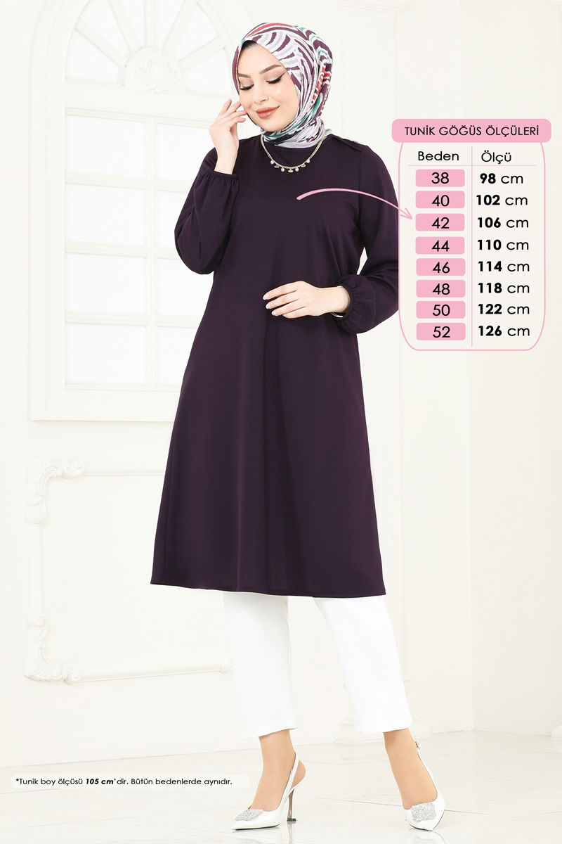 The Accessory Buttoned Modest Tunic is a stylish and comfortable choice for all seasons. This tunic, which can be cleaned with a gentle wash at 30 degrees, is made from breathable Mira fabric. It offers a modern look with its bike neck and unlined design, while adding a touch of elegance with buttons accessible from the back. Its elastic cuffs ease the use of the sleeves. The size 38 tunic displayed on the model ensures you maintain your elegance in any setting.