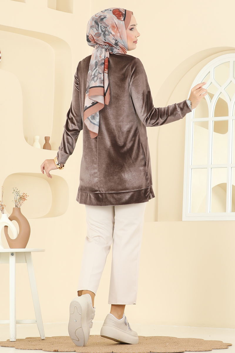 The Buttoned Back Velvet Tunic is a perfect blend of elegance and comfort for modest fashion. Ideal for autumn and winter, this tunic features a soft velvet fabric that offers a comfortable touch. Its crew neck design lends a modern look, while it can be easily washed at 30 degrees on a delicate cycle. This unlined tunic is lightweight and practical. The product shown on the model is size 38.