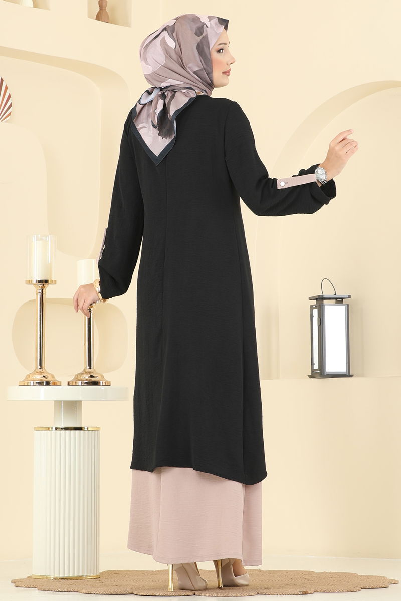 Tuniği Yırtmaçlı Elbiseli Takım 2742SL432-MS Siyah&Vizon