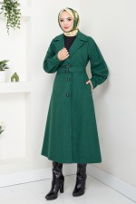 Kemerli Astarlı Kaşe Kaban 16124BSK984-M Zümrüt