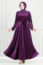 Kolları Taşlı Kadife Abiye 2014EFY931-M Mor