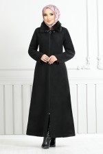 Önden Fermuarlı Kürklü Kaban 2060BGS895-M Siyah