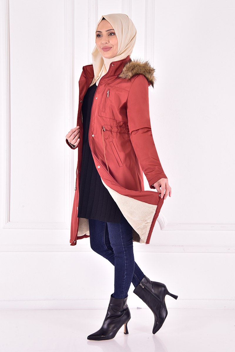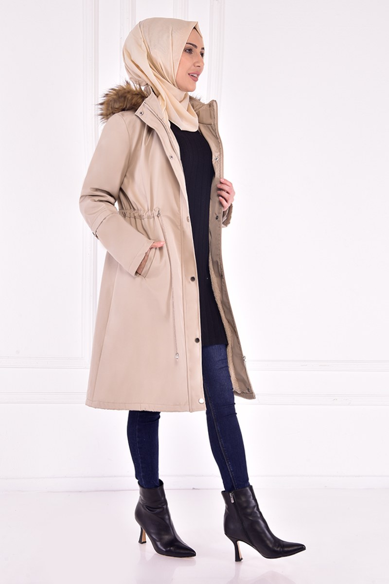 Kapüşonlu Kaban Krem TKN3363