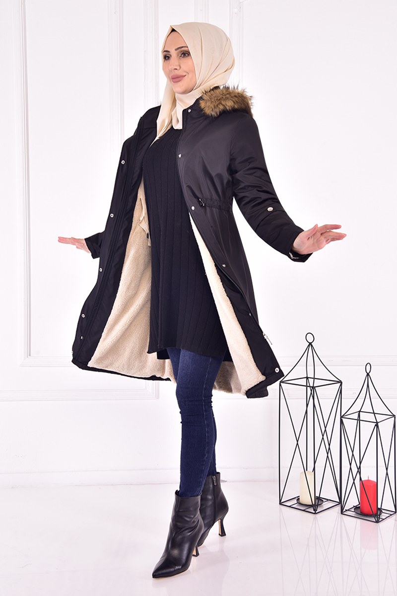 Kapüşonlu Kaban Siyah TKN3363