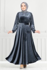 Kolları Taşlı Kadife Abiye 2014EFY931-M Antrasit