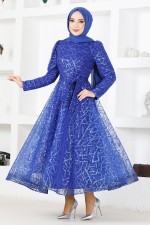 İncili Triko Elbise 8060HBS932-M Saks