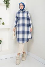 Yarım Fermuarlı Ekose Tunik 6915S982-M İndigo