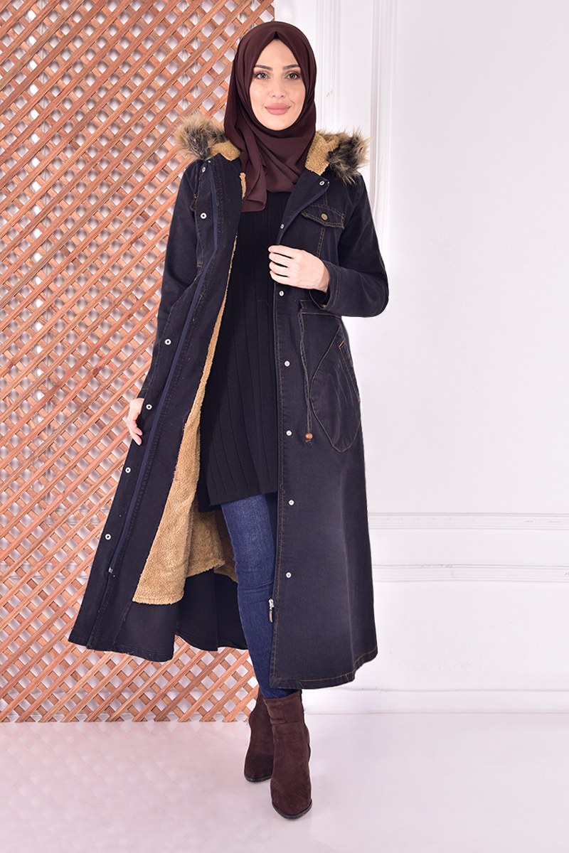 Kapüşonlu Kaban Haki TKN3361