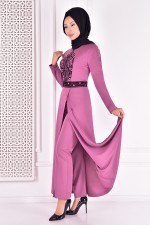 Flok Baskılı Kombin Gül Kurusu KBR70280