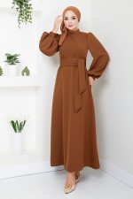 Balon Kollu Tesettür Abiye 5527END900-M Kahve