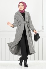 Çizgi Detaylı Uzun Kaban 319EVO1065-M Ekru