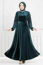 Kolları Taşlı Kadife Abiye 2014EFY931-M Zümrüt