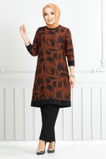 Yandan Yırtmaçlı Desenli Takım 165BO1060-M Kiremit