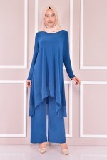 Chiffon Detailed With Trousers Double Team Indigo EFY3838