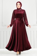 Kolları Taşlı Kadife Abiye 2014EFY931-M Bordo