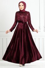 Pul Payetli Kadife Abiye 2015EFY931-M Bordo