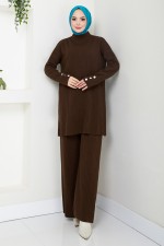 Yandan Yırtmaçlı Triko Takım 5052KLN1035-M Kahve