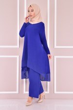 Şifon Detaylı Pantolonlu İkili Takım Saks EFY3838