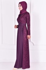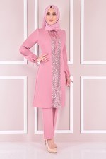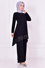 Şifon Detaylı Pantolonlu İkili Takım Mor EFY3838