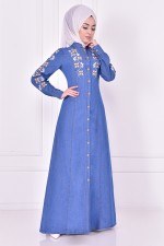 Nakışlı Elbise Mavi MSK4098