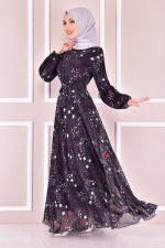 Şifon Elbise Siyah KBR20140