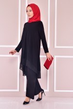 Mousseline Détaillé Avec Un Pantalon Doubles Équipe Noir EFFY3838