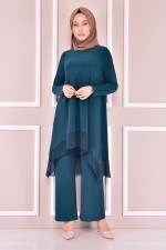 Mousseline Détaillé Avec Un Pantalon Doubles Équipe Émeraude EFFY3838