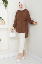 Yandan Bağcıklı Tunik 126ASN936-M Kahve