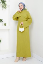 İncili Triko Elbise 8060HBS932-M Yağ Yeşili