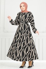 Manşeti Lastikli Desenli Elbise 4026TGE913-M Siyah