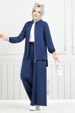 Önden Fermuarlı Modal Kumaş Takım 5699ZNK903-M İndigo