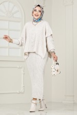 Süveterli Triko Elbise Kombin 6001UZ1029-M Taş