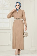 Yarım Fermuarlı Triko Elbise 6027KL1035-M Latte