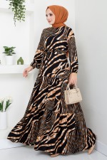 Beli Tünelli Desenli Elbise 9702HBS932-M Desen 1 Siyah&Vizyon
