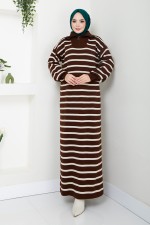 Çizgili Triko Elbise 6025KL1035-M Kahve