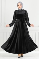 Kolları Taşlı Kadife Abiye 2014EFY931-M Siyah