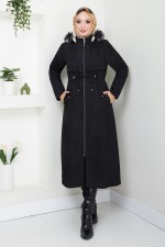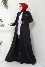 Önden Fermuarlı Pardesü Ferace 0003HMY948-M Siyah
