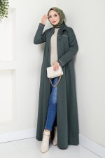 Önden Fermuarlı Pardesü Ferace 0003HMY948-M Haki