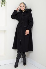 Kapşonu Kürklü Kaban 7001TRT1045-M Siyah