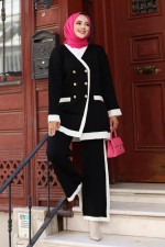 Kruvaze Yaka Triko Takım 24255TPK1049-M Siyah