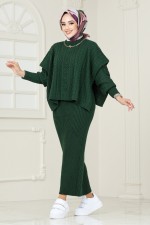 Süveterli Triko Elbise Kombin 6001UZ1029-M Zümrüt
