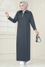 Yarım Fermuarlı Modal Kumaş Elbise 4588NES1021-M Antrasit