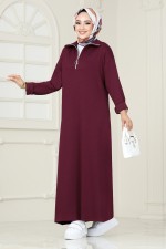 Yarım Fermuarlı Modal Kumaş Elbise 4588NES1021-M Bordo