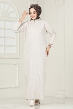 Yarım Fermuarlı Triko Elbise 6027KL1035-M Taş