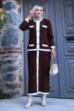 Önden Düğmeli Etekli Takım 24163TPK1049-M Kahve