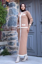 Önden Düğmeli Etekli Takım 24163TPK1049-M Latte
