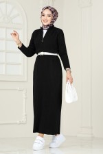 Yarım Fermuarlı Triko Elbise 6027KL1035-M Siyah