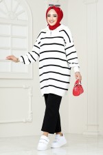 Çizgili Triko Tunik 1002KLN1035-M Ekru