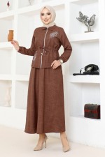 Süveterli Triko Elbise Kombin 6001UZ1029-M Taş