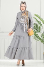 Beli Bağcıklı Sofia Elbise 024MR1077-M Gri
